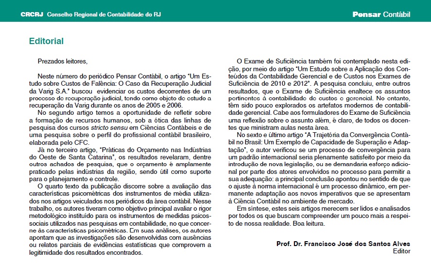 Submissões de artigos deverão ser enviadas para o email pensarcontabil@crcrj.org.br
